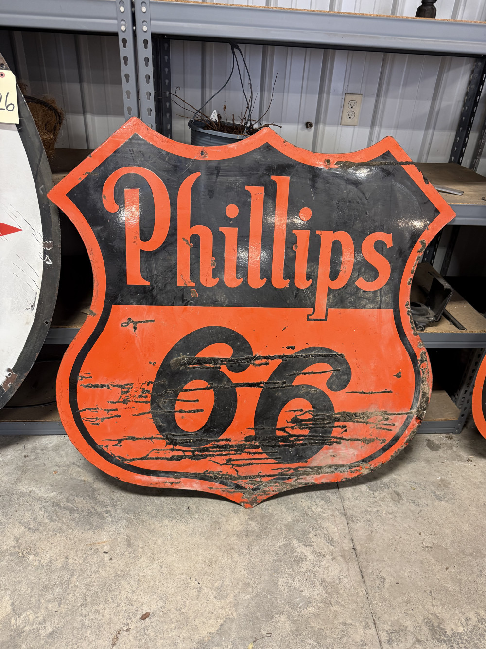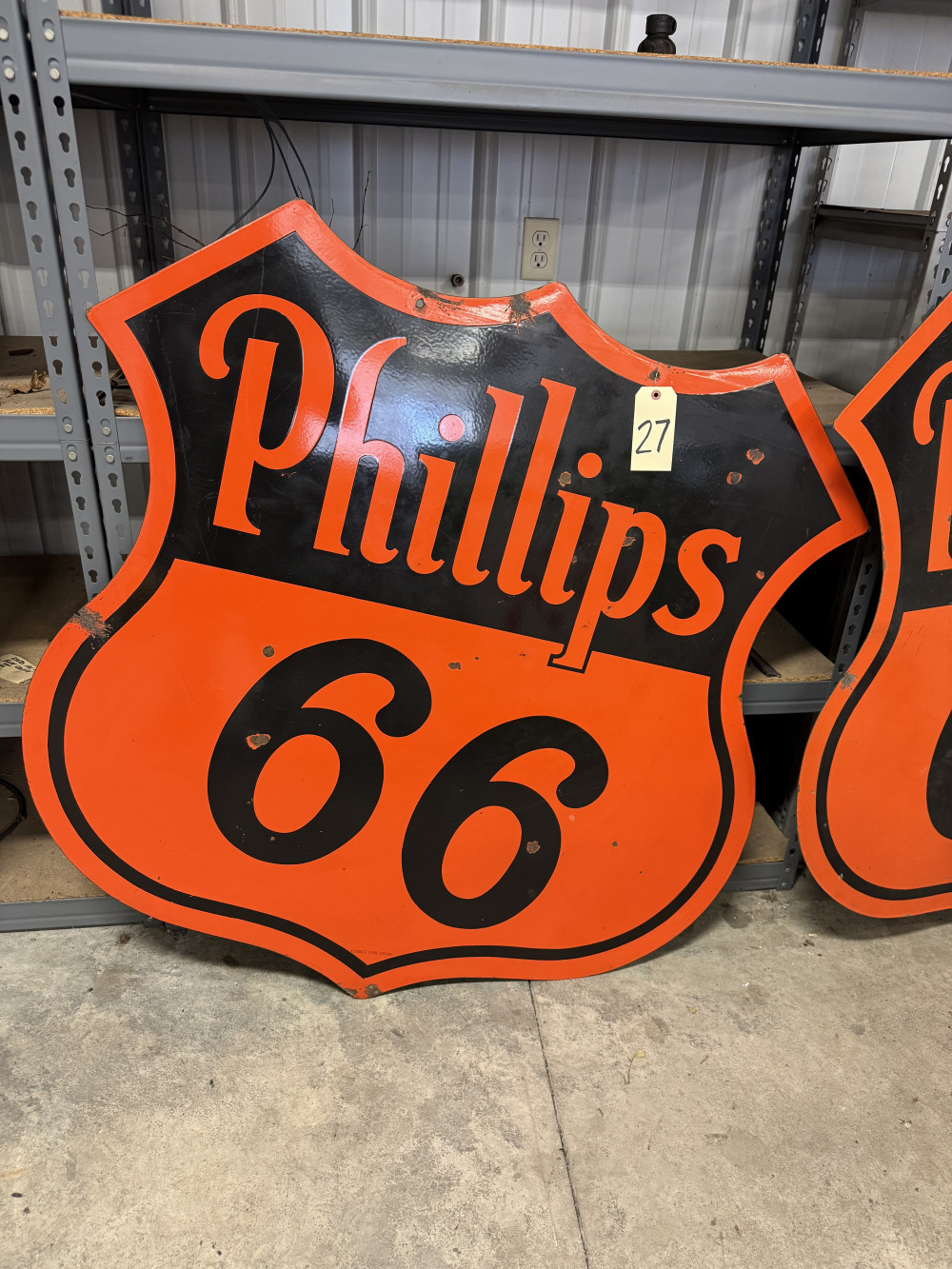 47" DOUBLE SIDED PHILLIPS 66 PORCELAIN SIGN (#27) STEVE CONRAD ESTATE AUCTION, GORE OK