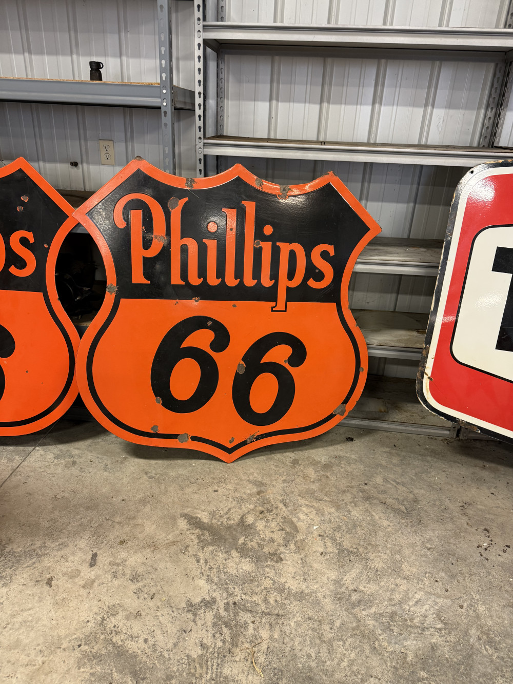47" DOUBLE SIDED PHILLIPS 66 PORCELAIN SIGN (#28) STEVE CONRAD ESTATE AUCTION, GORE OK
