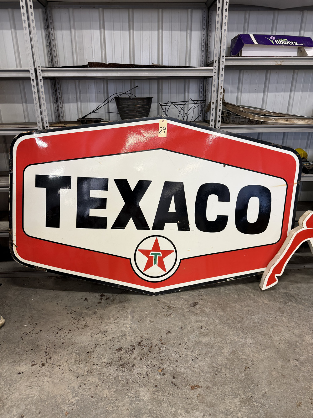 86" X 53" DOUBLE SIDED TEXACO PORCELAIN SIGN (#29) STEVE CONRAD ESTATE AUCTION, GORE OK