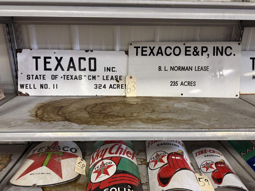 (2) TEXACO PORCELAIN LEASE SIGNS (#63) STEVE CONRAD ESTATE AUCTION, GORE OK