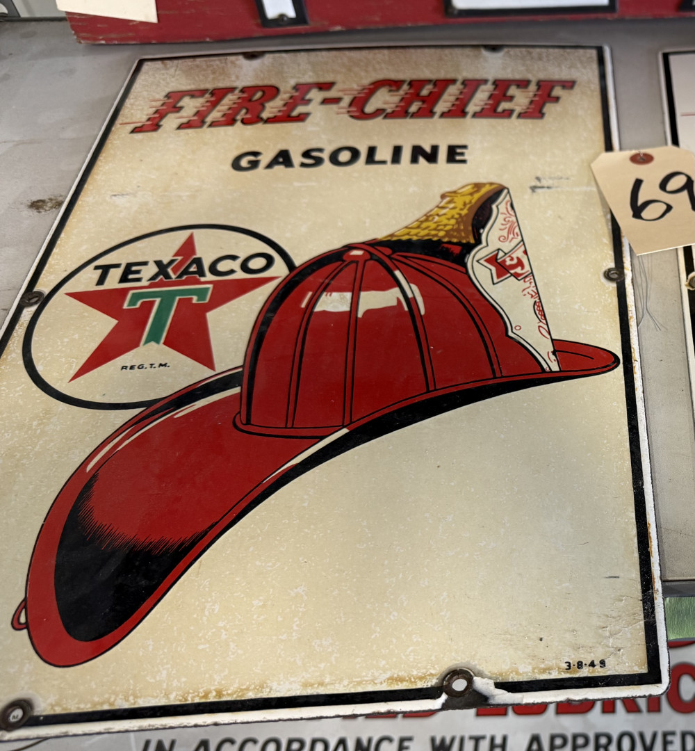 FIRE CHIEF GASOLINE PORCELAIN SIGN (#69) STEVE CONRAD ESTATE AUCTION, GORE OK
