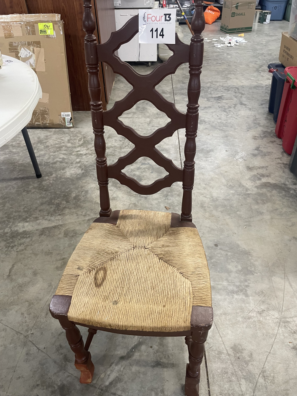 FARMHOUSE CHAIR W/WOVEN SEAT (#114) BREWER ONLINE, TALIHINA OK