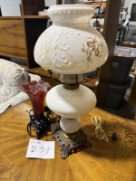# 239 — VINTAGE MILK GLASS HURRICANE LAMP, TIFFANY-STYLE LILY LAMP
