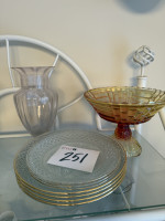 #251 — AMBER BOWL, GOLD RIM PLATES, VASE