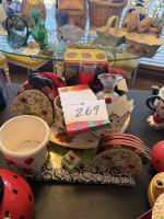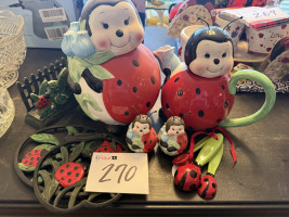 #270 — LOVELT LADYBUG COOKIE JAR, TEA POT, TRIVETS, S&P SHAKERS, MEASURING SPOONS, NAOKIN HOLDER