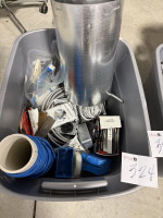 # 322 — TOTE OF MISC , MITER SAW, ICE SCRAPER