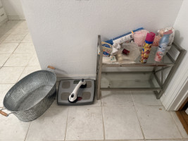 #1044 — SCALE, GLASS SHELF, BUCKET