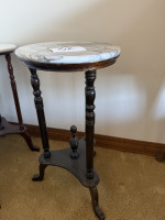 #31 — TWO MARBLE TOP SPINDLE LEG SIDE TABLES
