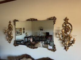 #40 — LARGE WALL MIRROR WITH CANDLE SCONCES SIDE PIECES