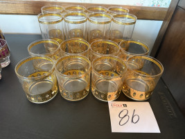 #86 — CULVER ANTIGUA LOWBALL AND HIGH BALL GLASSES W/22KT GOLD OVERLAY