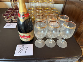 #87 — VERSAILLES CRYSTAL WINE GLASSES W/24KT GOLD BANDS AND VINTAGE BOTTLE OF EDEN ROC CHAMPAGNE