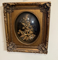 #88 — REAL HAWAIIAN FLOWERS AND FERNS DIPPED IN 24KT GOLD, IN BUBBLED GLASS FRAME
