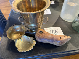 #155 — BRASS ITEMS, WOODEN SHOE LAST