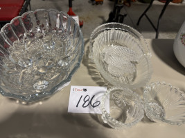 # 189 — VINTAGE CULVER GLASS SALAD BOWL W/OIL & VINEGAR CRUETS, S&P SHAKERS