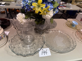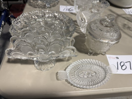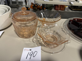 # 195 — LANCASTER JUBILEE PINK DEPRESSION GLASS BOWL, YELLOW VASELINE GLASS PLATE, AVON BRISTOL BLUE SOAP DISH